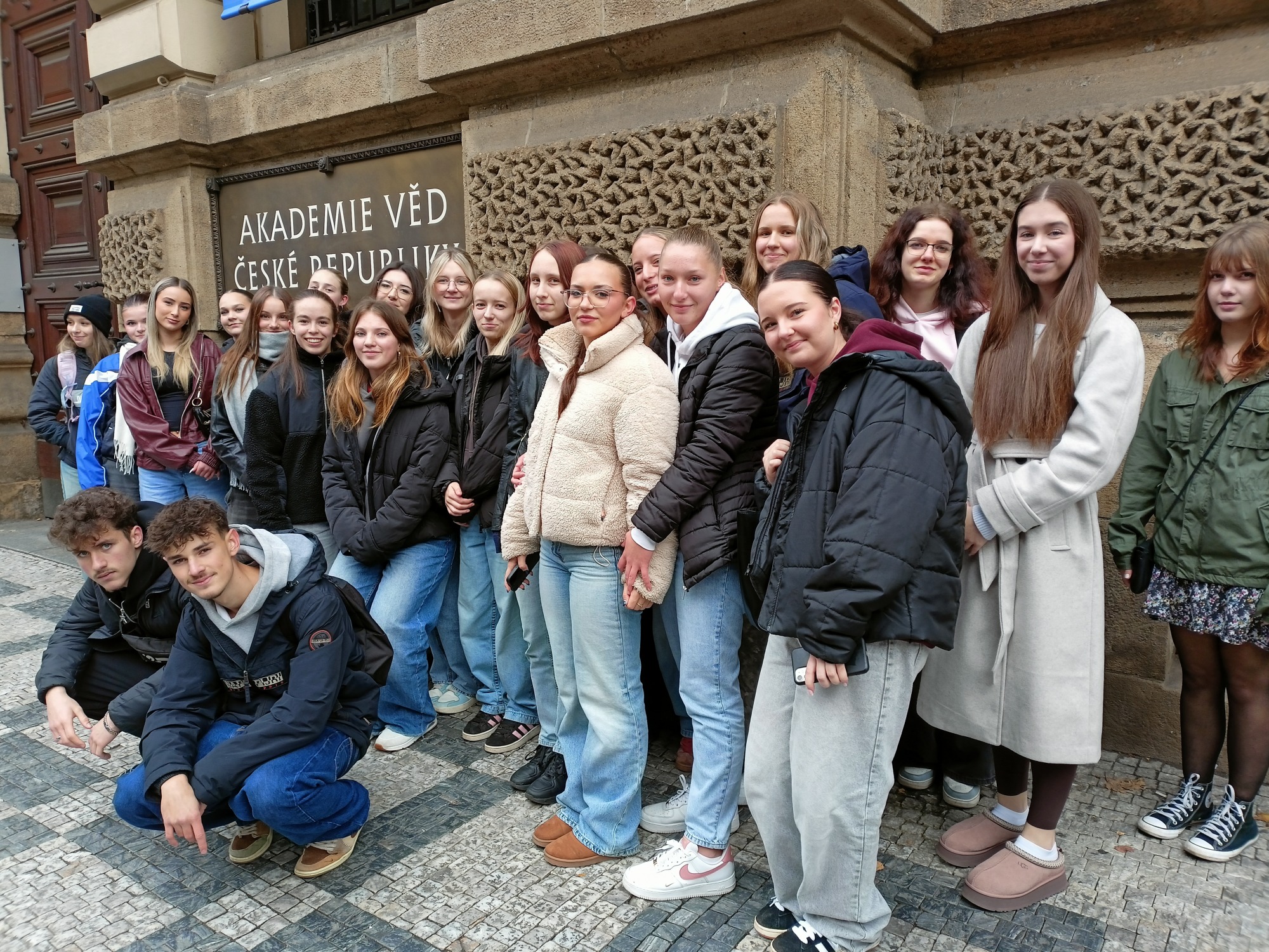 První zastávkou byl Pražský hrad, který studenty velmi zaujal svou historií i výhledy na město. Odtud se skupina vydala na procházku ke Karlovu mostu a po náročném programu nechyběla ani zasloužená pauza na tradiční trdelník. Poté výprava pokračovala přes Staroměstské náměstí až na Náměstí Republiky.