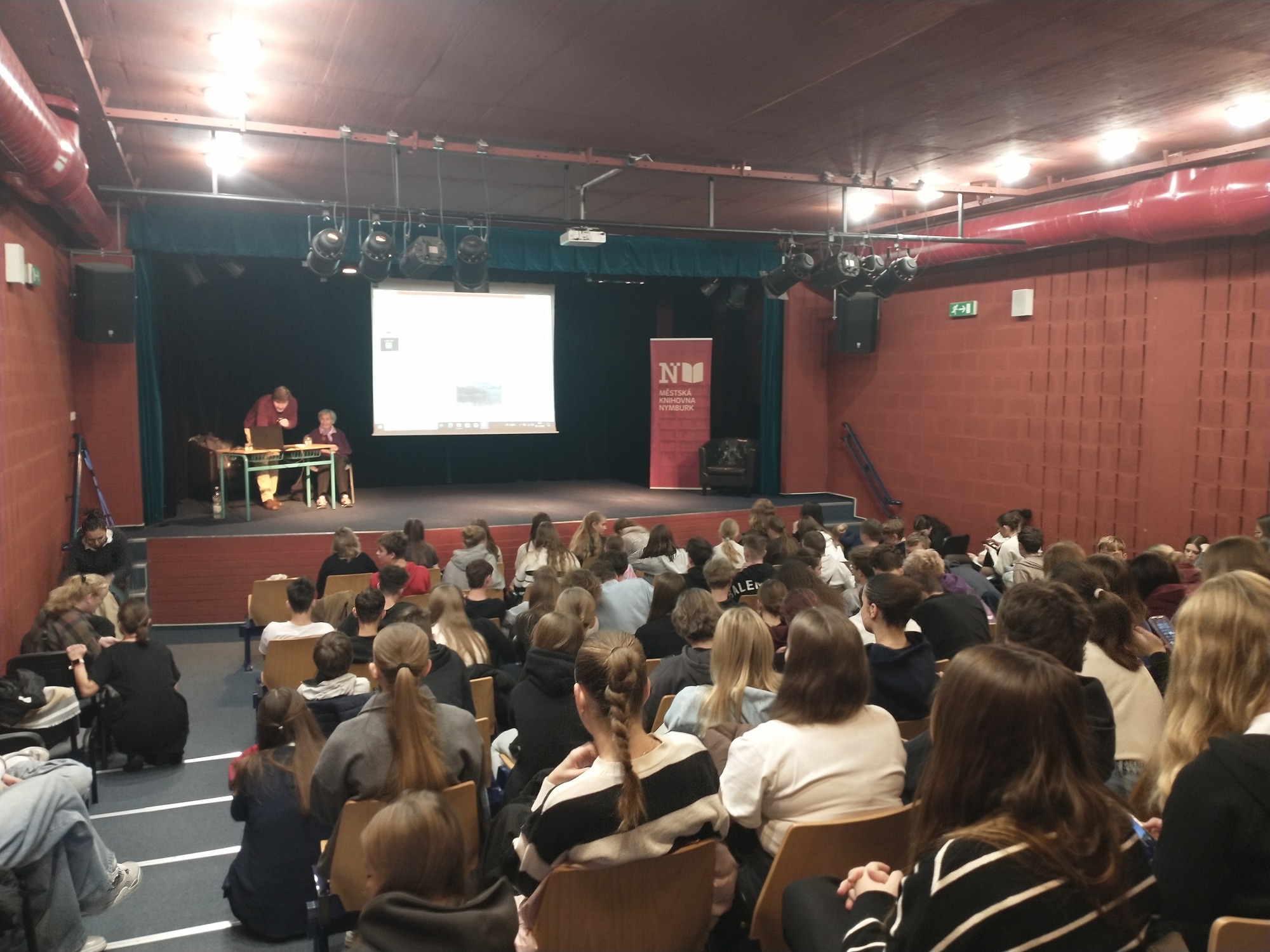 Úterní dopoledne 5. 11. 2025 se auditorium ZŠ Komenského naplnilo žáky druhých ročníků tříd 2. A a 2. Z a gymnazisty, aby se ponořili do hlubokého tématu šoa, během projektového dne Za hvězdou Davidovou.