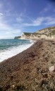 Krajina u břehu byla nádherná. Hezky zelená tráva a kopce. Samotná pláž byla nejhezčí. Nejlepší pohled byl na obloukovitý útes, který vypadal opravdu zajímavě. Byla to příjemná procházka, ze které máme spoustu fotek